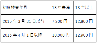 現在では、ハイブリッド車を除く ガソリン・LPG車は 新車新規登録から13年、ディーゼル車では11年が経過すると15%加算されるようになっています。