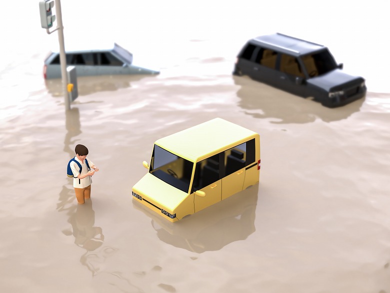 水没車とは大雨や洪水などの自然被害により、浸水した車のことです。冠水車や水害車とも呼ばれます。日本では、梅雨の時期や台風シーズンに浸水・冠水の様子がニュースで伝えられ、ルーフまで水没した車をイメージされる方もいらっしゃいますが、一般的には車内のフロアまで浸水した車のことを指します。